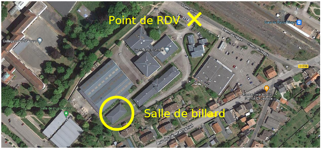 Les joueurs se donnent RDV (au point de RDV sur la carte) pour traverser ensemble le lycée.